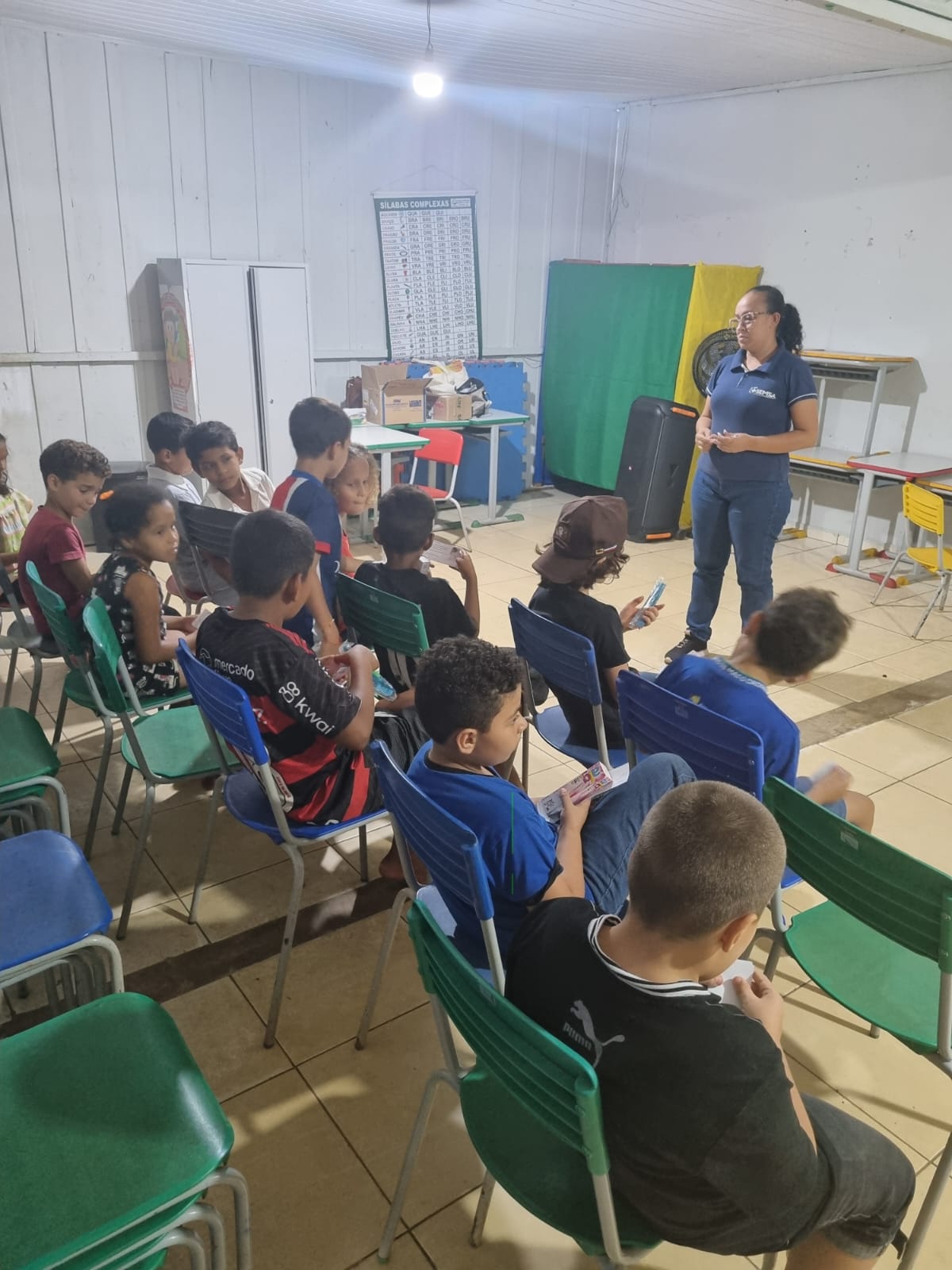 Trabalho intersetorial com CRAS junto ao programa ser família. Foram abordados os seguintes temas: condicionalidades do programa, a importância do cadastro atualizado e assinatura dos relatórios. Foi anunciada a data para matrícula das oficinas no serviço de convivência (09/12/25) e também realizada entrega de cestas básicas.