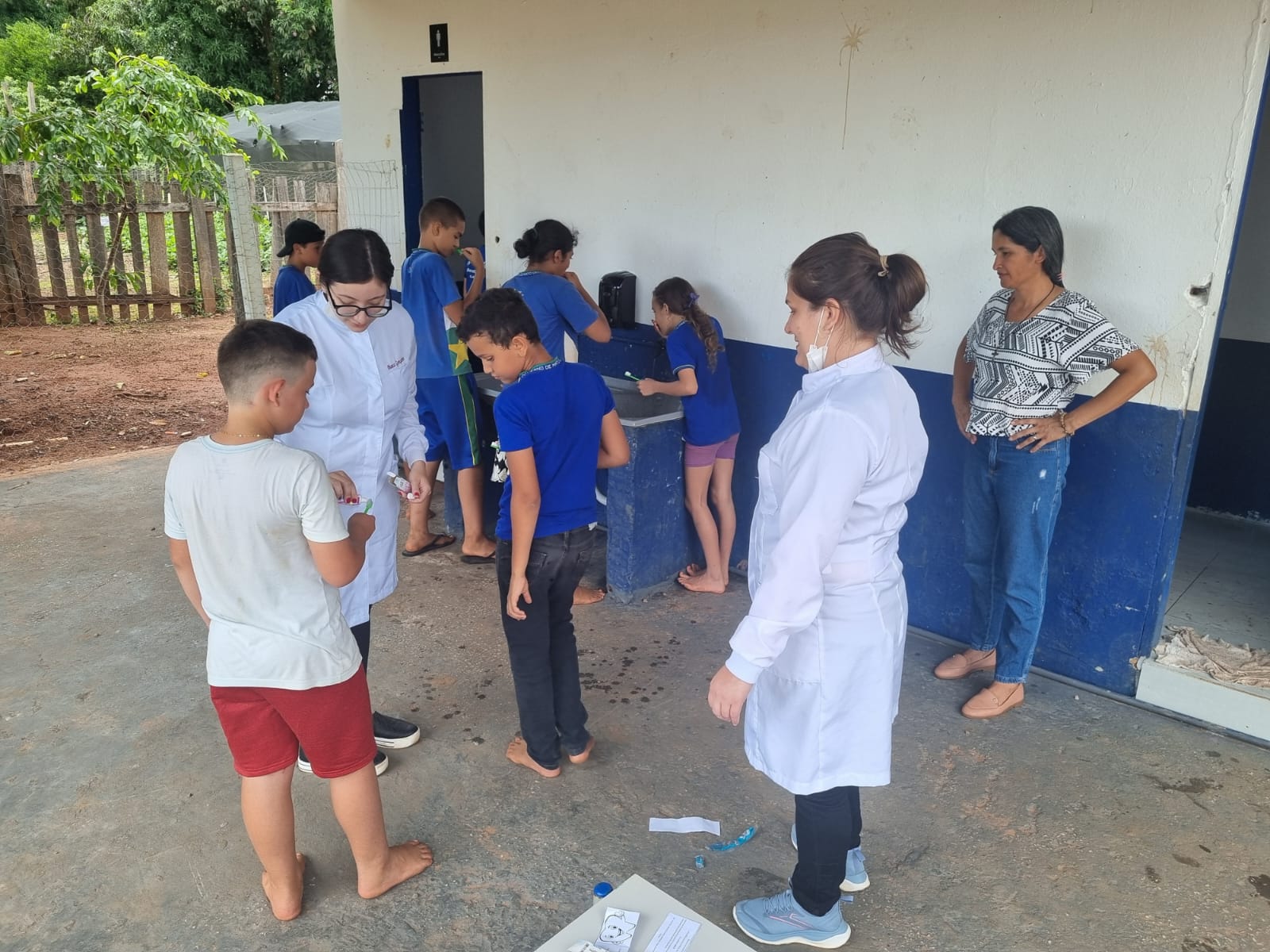 Programa de Saúde na Escola em ação na área rural (Assentamento Keno) com ações de Saúde Mental, saúde bucal e nutricional, com orientações aos alunos da escola, medidas antropométricas e prática de escovação supervisionada.