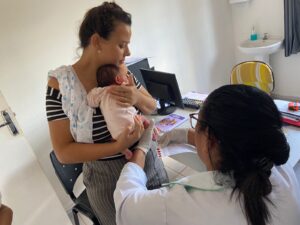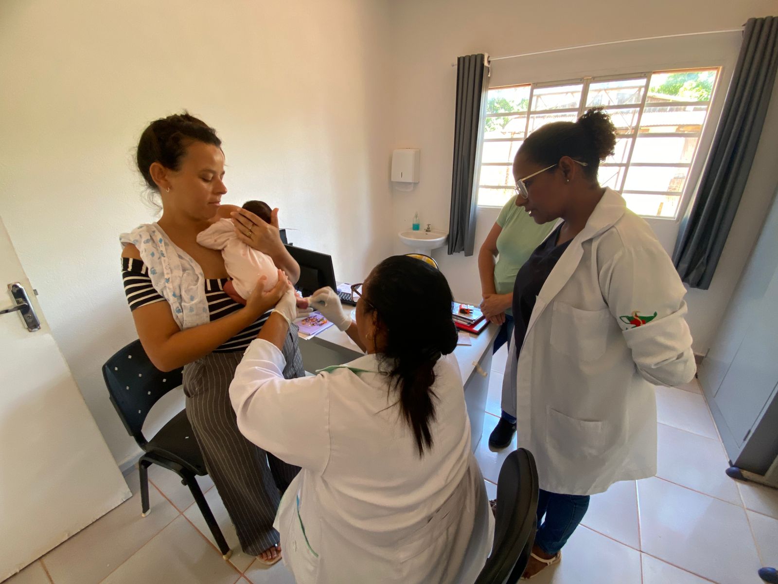 Realização de teste do pezinho na unidade do Assentamento 12 de outubro, uma forma de atender levar acesso as famílias.