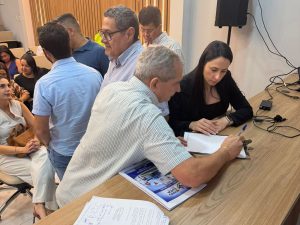 Nobres recebe Assembleia Ordinária do CISVARC – Consórcio Intermunicipal de Saúde Vale do Rio Cuiabá. Na ocasião vários assuntos foram tratados com a assinatura do Termo de Parceria com a SES na implantação do Saúde Digital. Projeto pioneiro no estado de Mato Grosso. Apresentamos os avanços do Projeto Nobres Cuida – SUS Digital no município de Nobres. Foram apresentados os balanços do último quadrimestre de 2025, aprovado por unanimidade, outros assuntos foram pautados como a organização para aquisição de medicamentos e Projeto Fila Zero.