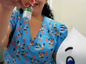 Cláudia no dia D da Vacinação.