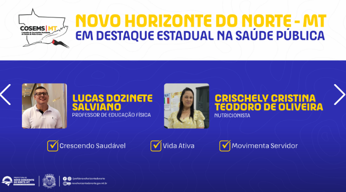 A Saúde de Novo Horizonte do Norte teve três projetos selecionados para apresentação no encontro regional do Conselho de Secretarias Municipais de Saúde de Mato Grosso (COSEMS), um importante evento voltado ao fortalecimento das práticas do Sistema Único de Saúde (SUS).