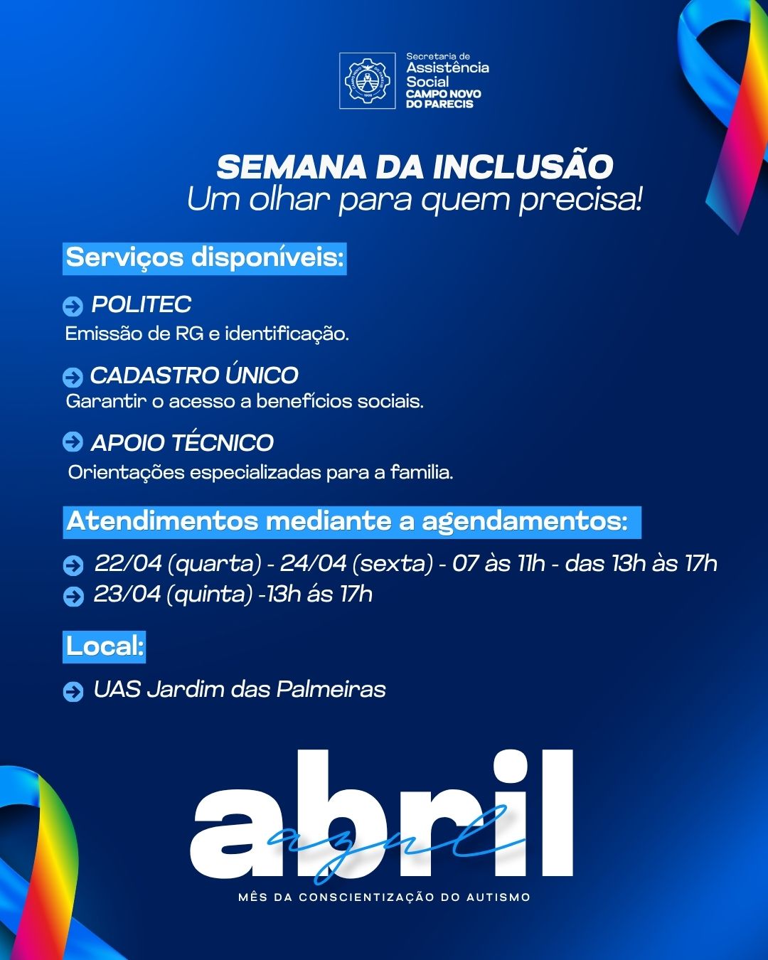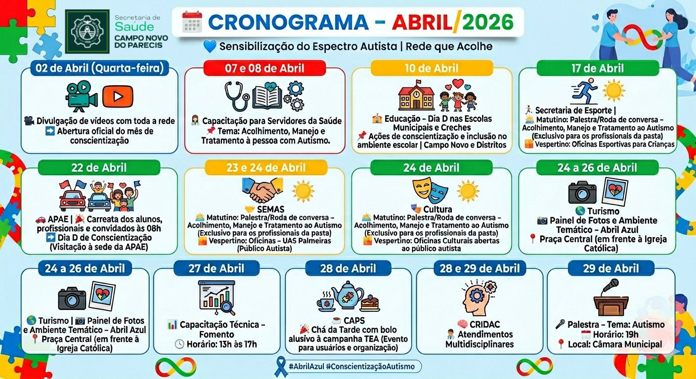 A Prefeitura de Ipiranga do Norte, por meio das Secretarias de Saúde e Educação, realizou no dia 17 de abril de 2026 o III Simpósio Municipal sobre Autismo, com o tema “Integração que Gera Resultados: Uma Experiência Multiprofissional para o Autismo”, reunindo profissionais e famílias para discutir avanços e fortalecer a rede de cuidado às crianças com TEA.