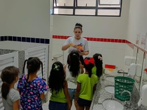 Na sexta-feira (24/4), a Equipe da USF II Cidade Bela realizou ação de promoção à saúde bucal na Escola Trenzinho Mágico. Durante a atividade, foram desenvolvidas ações de escovação supervisionada, aplicação de flúor e orientações de higiene oral, de forma lúdica e educativa, incentivando desde cedo hábitos saudáveis entre as crianças. As demais Equipes de Saúde Bucal de Alta Floresta seguem trabalhando na promoção de sorrisos mais saudáveis! “SAÚDE BUCAL NA ESCOLA: ALTA FLORESTA SORRISOS SAUDÁVEIS”.