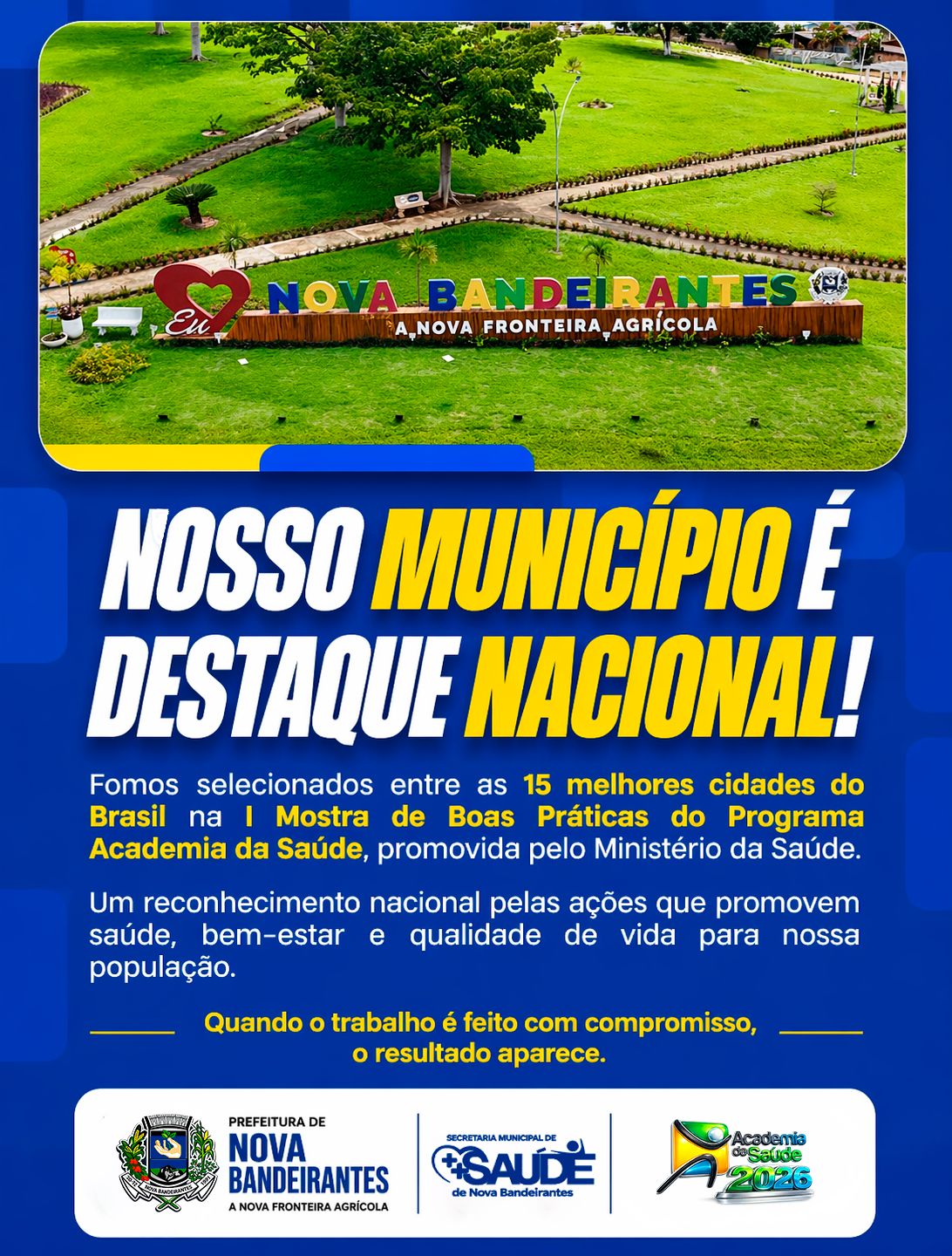 Esse reconhecimento nacional reforça que o trabalho sério, o compromisso da gestão e os investimentos em saúde estão gerando resultados concretos, promovendo bem-estar e melhorando a qualidade de vida da nossa população.