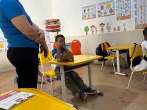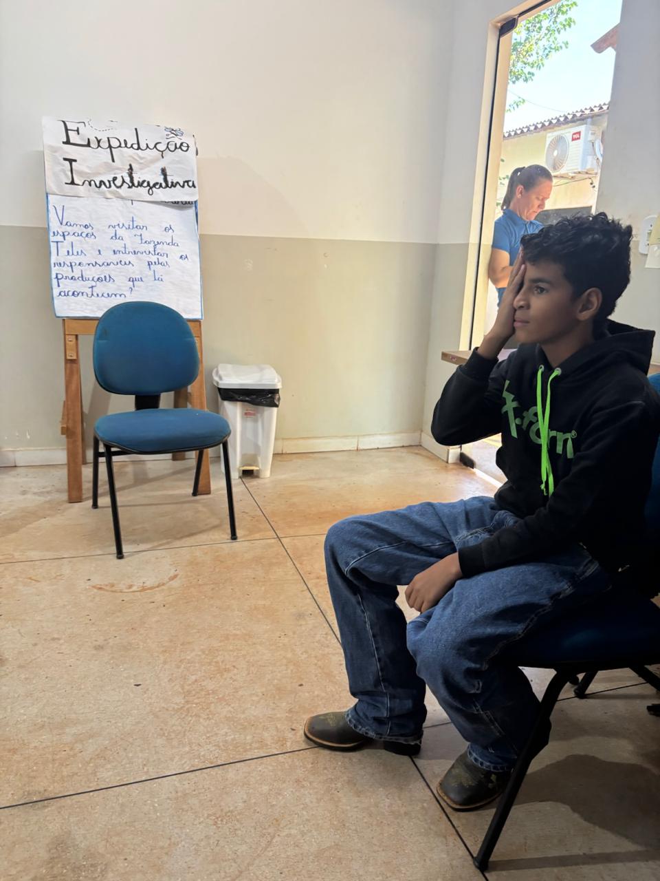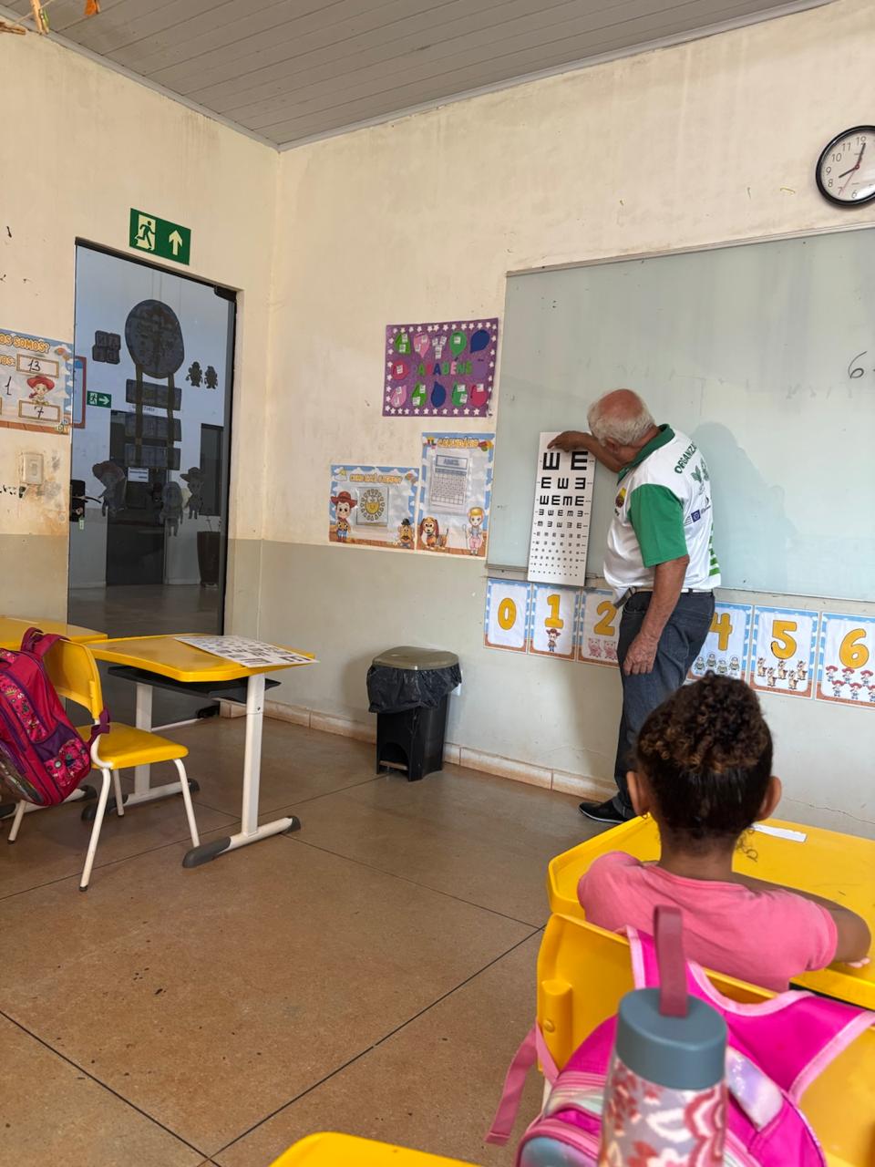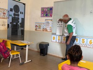 Saúde Ocular – Programa Saúde na Escola (PSE). Foram realizadas avaliações de saúde ocular com os estudantes da escola da zona rural, por meio da aplicação do teste de acuidade visual, com o objetivo de identificar precocemente possíveis alterações visuais e encaminhar os casos necessários para avaliação especializada.