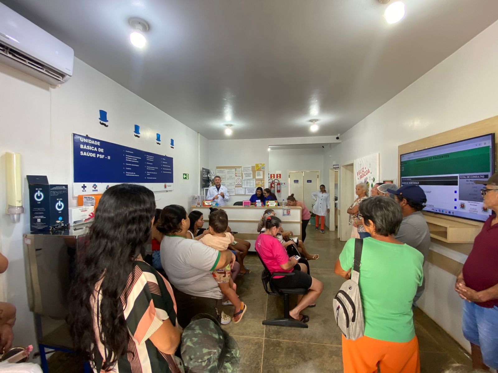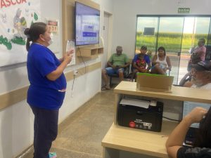 No turno da tarde, a ESF 2 realizou uma ação de Sala de Espera, conduzida pelo Dr. Márcio e equipe, abordando a importância da rotina e das consultas de puericultura, além dos principais sinais e sintomas das síndromes respiratórias em crianças. A atividade reforçou a importância do acompanhamento regular do crescimento e desenvolvimento infantil, bem como a identificação precoce de sinais de alerta, contribuindo para o cuidado e a saúde das crianças.