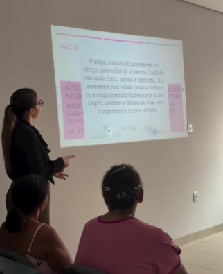 Grupo de Autocuidado – Cuidar é Viver. Encontro no dia 03/10 foi especial e repleto de aprendizado! Falou-se sobre a importância do autocuidado em todas as dimensões da vida: física, mental, espiritual e social. O grupo é um espaço de acolhimento, troca de experiências e fortalecimento, onde cada participante é protagonista do seu cuidado. Em alusão ao Outubro Rosa, reforçamos a importância da saúde da mulher, do cuidado preventivo e do autocuidado como forma de valorização da vida.