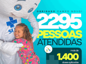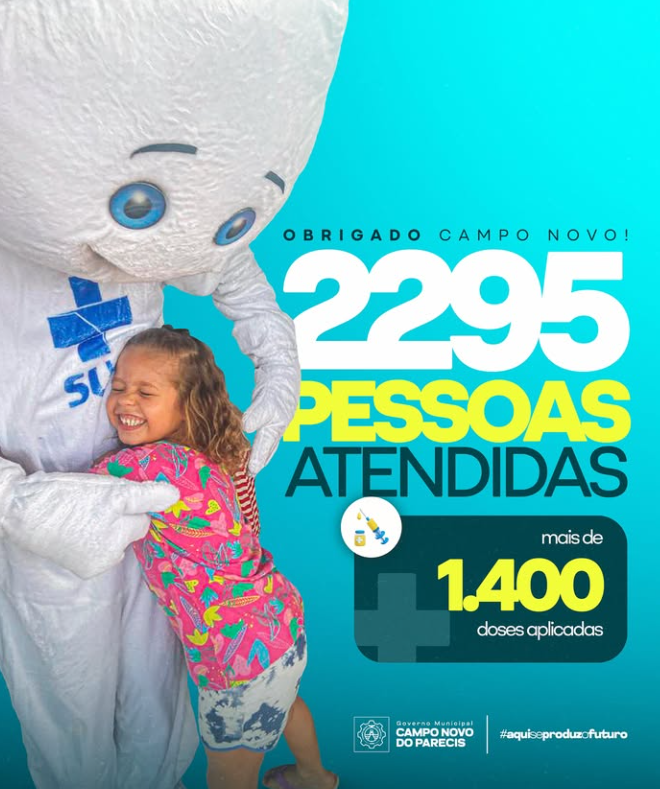 A saúde de Campo Novo segue avançando! Foram 2.295 pessoas atendidas e mais de 1.400 doses aplicadas em mais uma grande ação do SUS no município.
