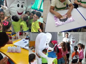 Semana Municipal da Saúde Bucal de Alta Floresta. A Semana Municipal da Saúde Bucal está repleta de atividades de prevenção e promoção da saúde bucal nas escolas urbanas e rurais do município. Com muita alegria e aprendizado, as crianças participaram de ações lúdicas que ensinaram, de forma divertida, a importância do cuidado com o sorriso. A presença especial do Dr. Dentinho encantou a garotada e tornou os momentos ainda mais animados! Também foram realizadas escovação supervisionada e aplicação de flúor, reforçando os hábitos saudáveis desde cedo.