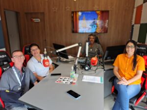 Gravação do primeiro episódio do podcast Frequência da Vida, fazendo menção ao Janeiro Branco e Janeiro Roxo. Servidores participando de uma entrevista em uma rádio local no objetivo de abordar o fluxo de trabalho da equipe Emulti, apresentação do projeto “Frequência da Vida” que iniciará mês de janeiro e lembrete dos cuidados na prevenção da dengue.