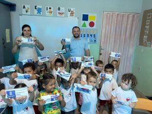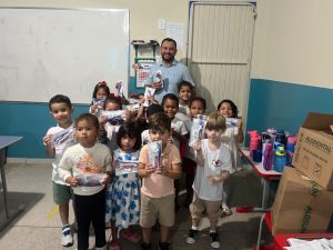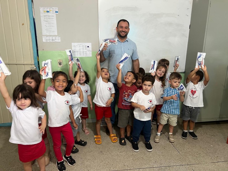 A Prefeitura de Água Boa, por meio da equipe de Saúde Bucal da ESF Central, realizou nesta quarta-feira (26) a entrega de 243 kits de higiene bucal para alunos da Escola Municipal Jacy Kuhn Salomoni. A ação foi conduzida pelo cirurgião-dentista Sharlles Deibler Peres Gonçalves e pela Auxiliar de Saúde Bucal (ASB) Flávia Cristina de Souza, que fizeram a entrega dos kits para estudantes das turmas Jardim A, Jardim B, Pré I A, Pré I B, Pré II A e Pré II B.