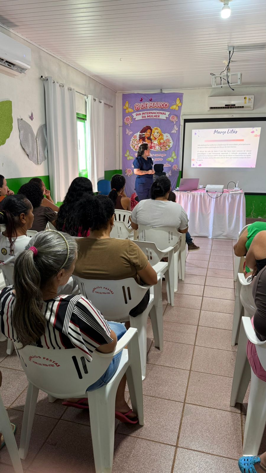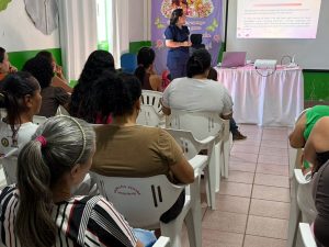 Ação Intersetorial Secretaria de Saúde e CRAS no dia 23/03 com a Palestra sobre o autocuidado feminino com foco na prevenção do Câncer do Colo Uterino – Março Lilás, ministrada pela Enfermeira Karyne Nalevaiko para as participantes do Serviço de Proteção e Atendimento Integral a Família.