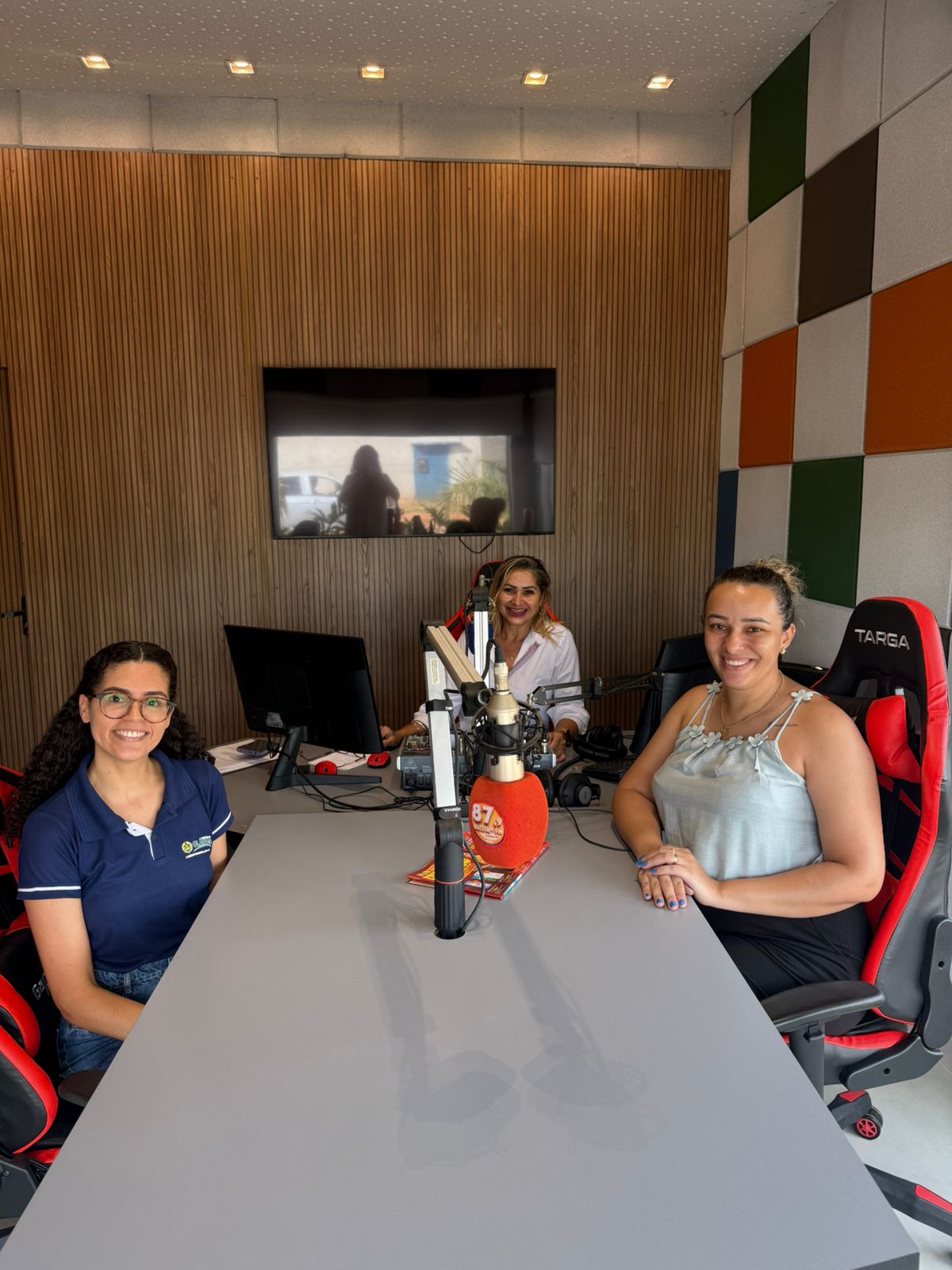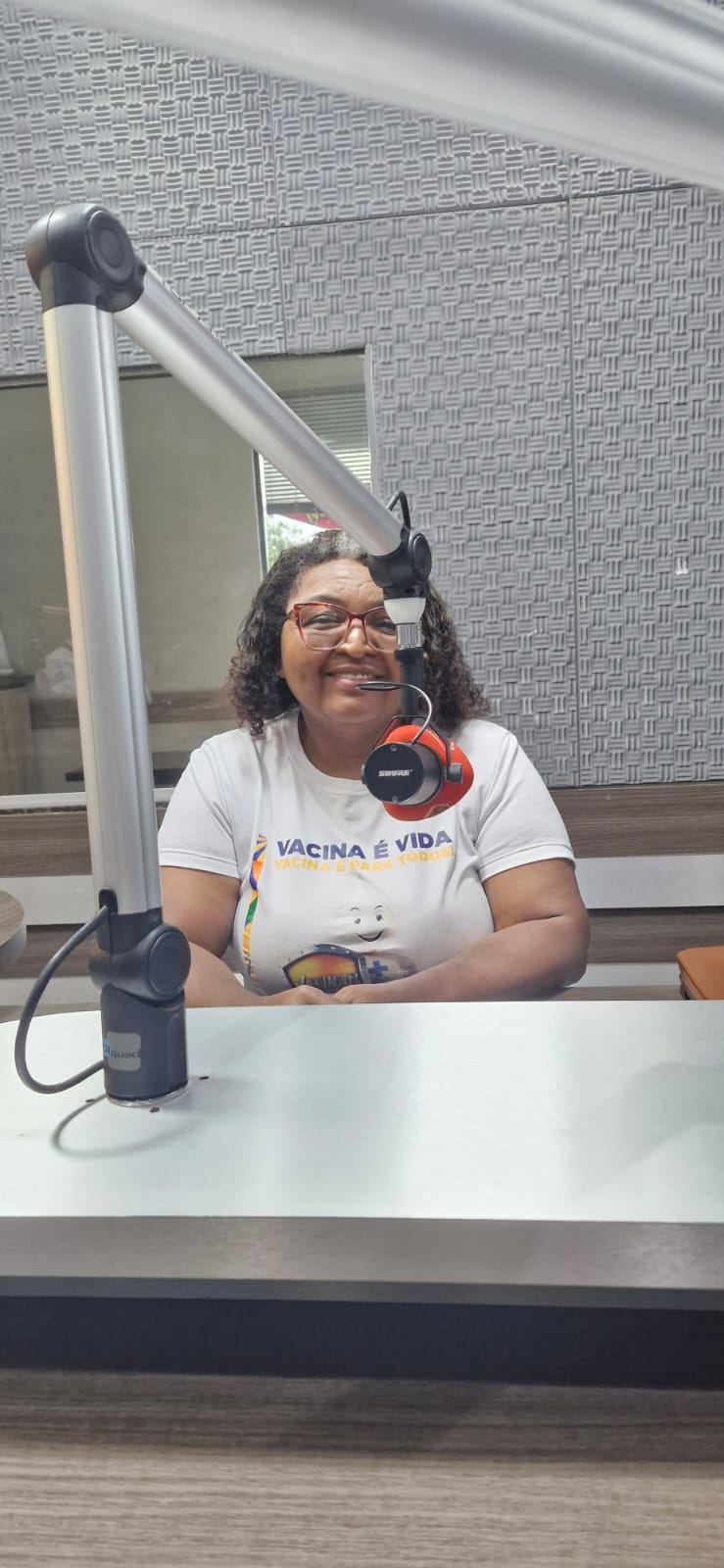 Registro de entrevista realizada em rádio local pela coordenadora de saúde e médica do município, abordando as ações do Dia D da Mulher, convidando a população para Campanha a ser realizada. Na ocasião, foram destacadas a importância da prevenção, do autocuidado e da participação das mulheres nas atividades ofertadas, reforçando o compromisso da gestão com a promoção da saúde feminina.
