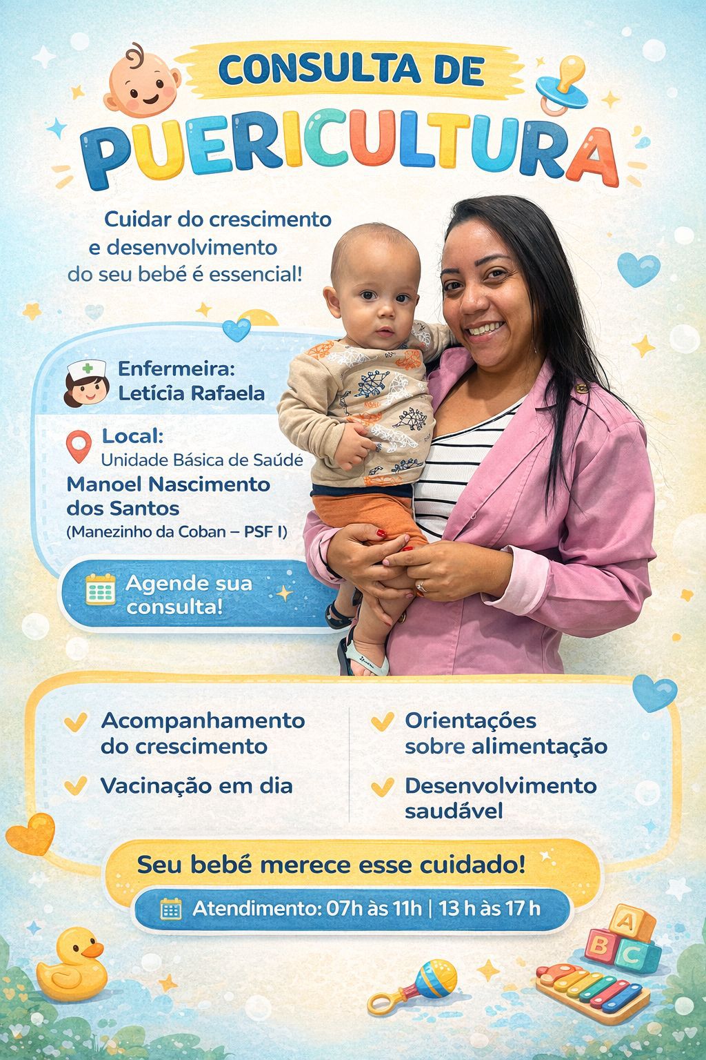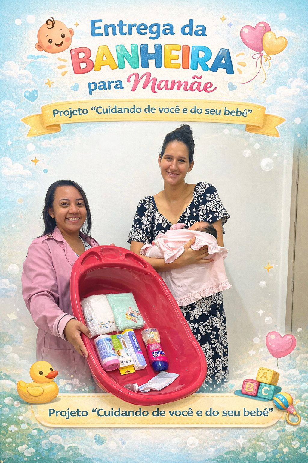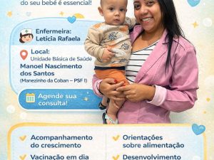 Projeto “Cuidando de Você e do Seu Bebê”, voltado ao fortalecimento das boas práticas na gestação, no puerpério e no cuidado com o recém-nascido. A iniciativa busca orientar, acolher e promover um acompanhamento qualificado, garantindo mais segurança, saúde e bem-estar para a mãe e o bebê.