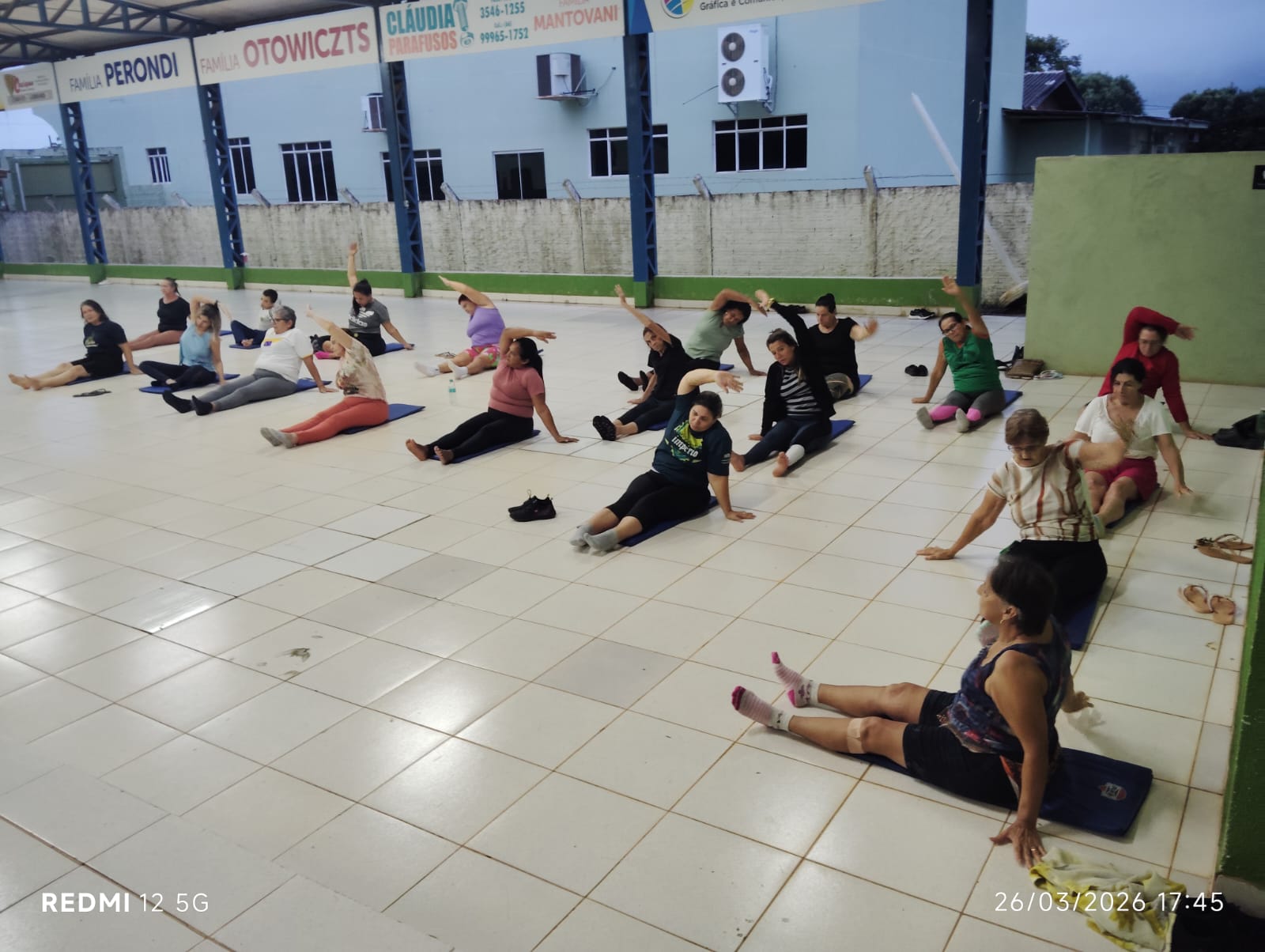 Pilates solo acontecendo semanalmente com a Educadora Física Emanuelly, no Clube dos Idosos para toda população.