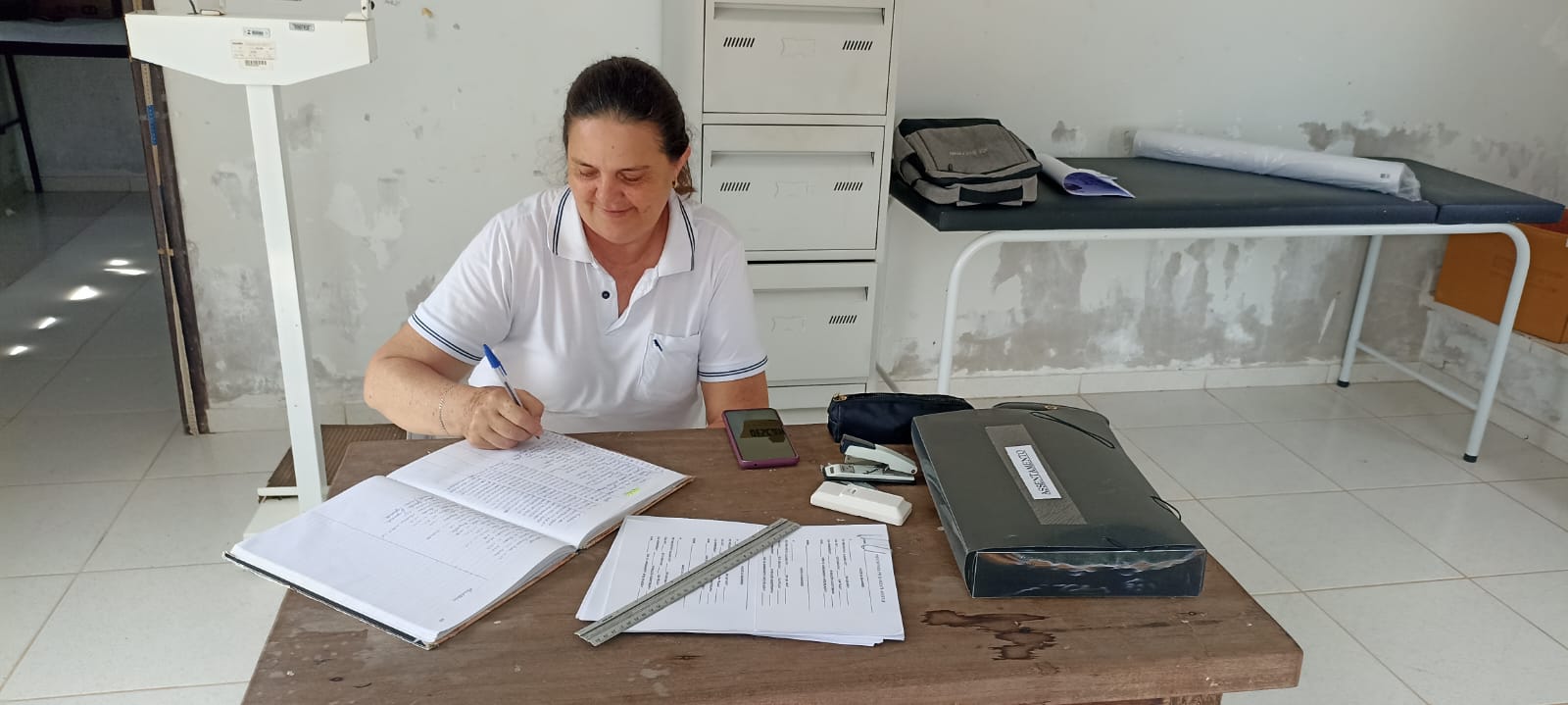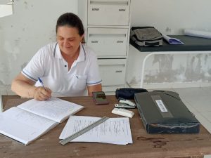 A equipe de saúde está nas escolas de Santa Carmem realizando o acompanhamento do crescimento e da vacinação dos alunos.