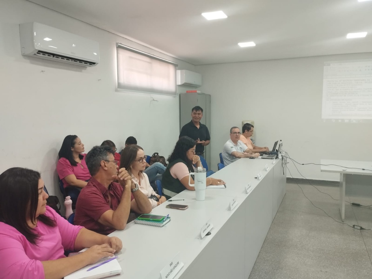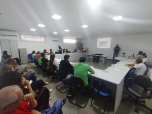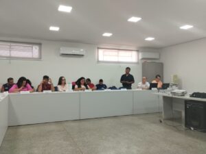A reunião teve início com o diálogo sobre o Programa Mais Acesso a Especialistas (PMAE), foi realizada uma discussão com os gestores municipais, com participação das técnicas do Escritório Regional, sobre os ajustes necessários no Plano de Ação Regional, tendo em vista a adequação ao teto financeiro. A equipe da Superintendência do Ministério da Saúde apresentou a estratégia de apoio técnico para a implementação da Política Nacional de Saúde Integral da População Negra e orientações relacionados aos instrumentos de planejamento e gestão do SUS, reforçando os cronogramas para alimentação do PMS, PAS, RAG e RDQA. Também foi abordada pelo apoiador a temática do ressarcimento interfederativo de medicamentos judicializados, com explanação sobre os fluxos, competências e exigências previstas na Portaria GM/MS nº 6.212/2024.